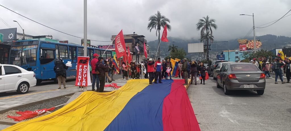 A pocos metros de avanzar, la marcha fue bloqueada por efectivos policiales motorizados que impidieron el paso hacia el centro de Quito. Los manifestantes quedaron retenidos en el sector de La Villaflora, donde se reportaron momentos de tensión por el impedimento de que la movilización avance.