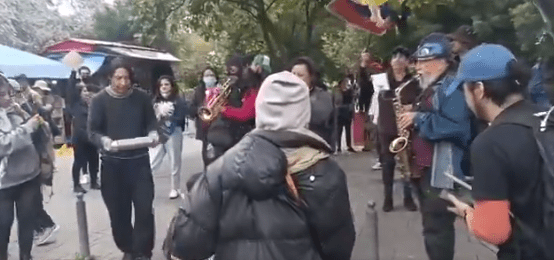 Minutos antes del operativo, la concentración transcurría de forma pacífica y estaba acompañada por expresiones culturales, música y actuaciones de artistas y payasos.