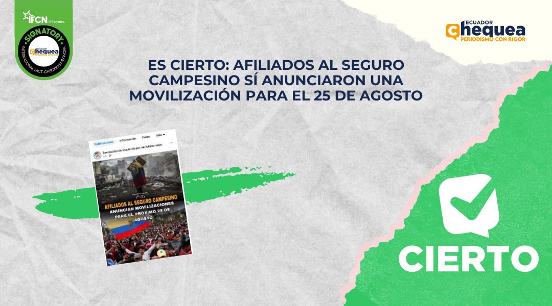 En el evento se dieron varias declaraciones mismas que han sido usadas para crear distintos contenidos en redes sociales. En Facebook, una publicación asegura que afiliados al Seguro Campesino anuncian movilización para el 25 de agosto. Se califica este contenido como cierto. Byron Garcés, presidente de la Federación única de afiliados al Seguro Social Campesino, informó que cumplirán una jornada de protesta el 25 de agosto en varias localidades. Además, aseguró que analizan cierres viales.