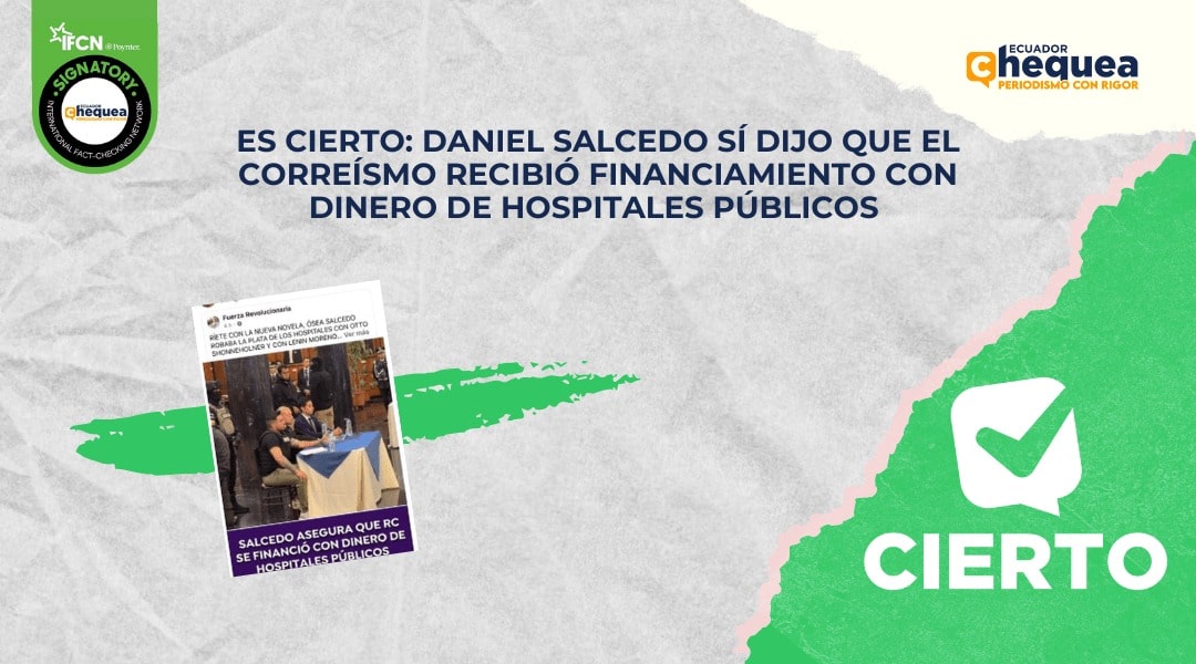 Sus declaraciones han causado un debate en redes sociales y varios contenidos han circulado. En Facebook, un post asegura que Salcedo dijo que la Revolución Ciudadana, fue financiada por dinero de hospitales públicos. Se califica este contenido como cierto.
