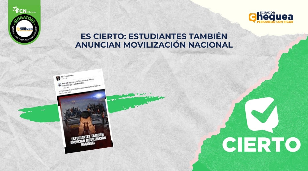 Una publicación en Facebook asegura que los estudiantes también anuncian movilización nacional para el 16 de julio. Se califica este contenido como cierto. Los estudiantes se movilizarán en esa fecha en el país. Ellos reclaman una deuda estatal de 712 millones a universidades, falta de becas, reformas a la LOES y precariedad laboral. También rechazan la Ley de Integridad Pública, cuyas demandas de inconstitucionalidad se han presentado ante la Corte.