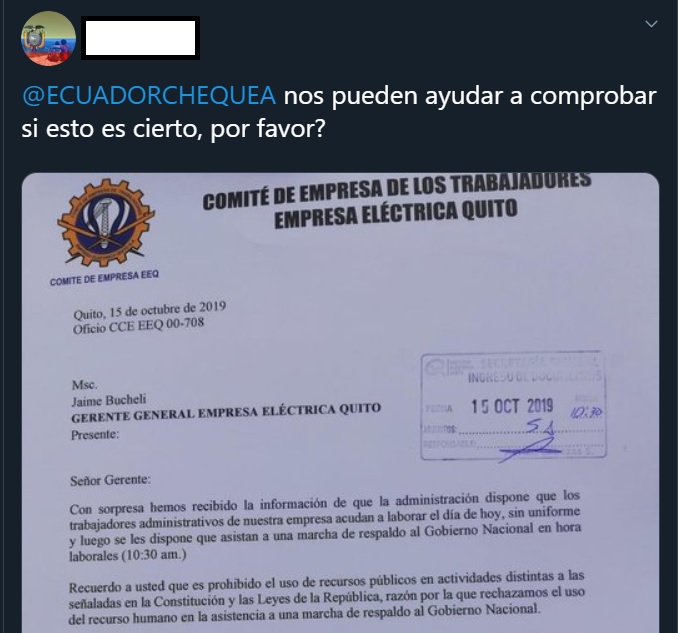 — Ecuador Chequea (@ECUADORCHEQUEA) October 16, 2019