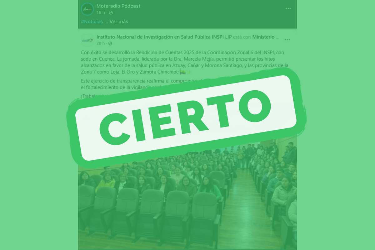 - Qué verificamos: una publicación oficial del INSPI sobre la rendición de cuentas 2025 de la Coordinación Zonal 6, acompañada de una fotografía del auditorio.