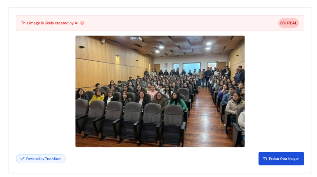 Asimismo, la herramienta que permite también detectar IA, ‘Undetectable AI’, también relevó indicios de modificaciones en la imagen. El reporte brindado por la herramienta arrojó un 3% de probabilidad de que la fotografía del INSPI sea real.