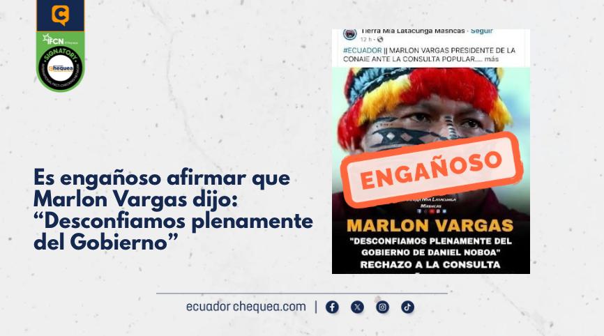 En ese contexto se brindaron varias declaraciones y eso ha generado varias publicaciones en redes sociales. En Facebook, un post asegura que Vargas dijo textualmente: “Desconfiamos plenamente del Gobierno de Daniel Noboa”; y que por eso van a rechazar la consulta popular. Se califica este contenido como engañoso.