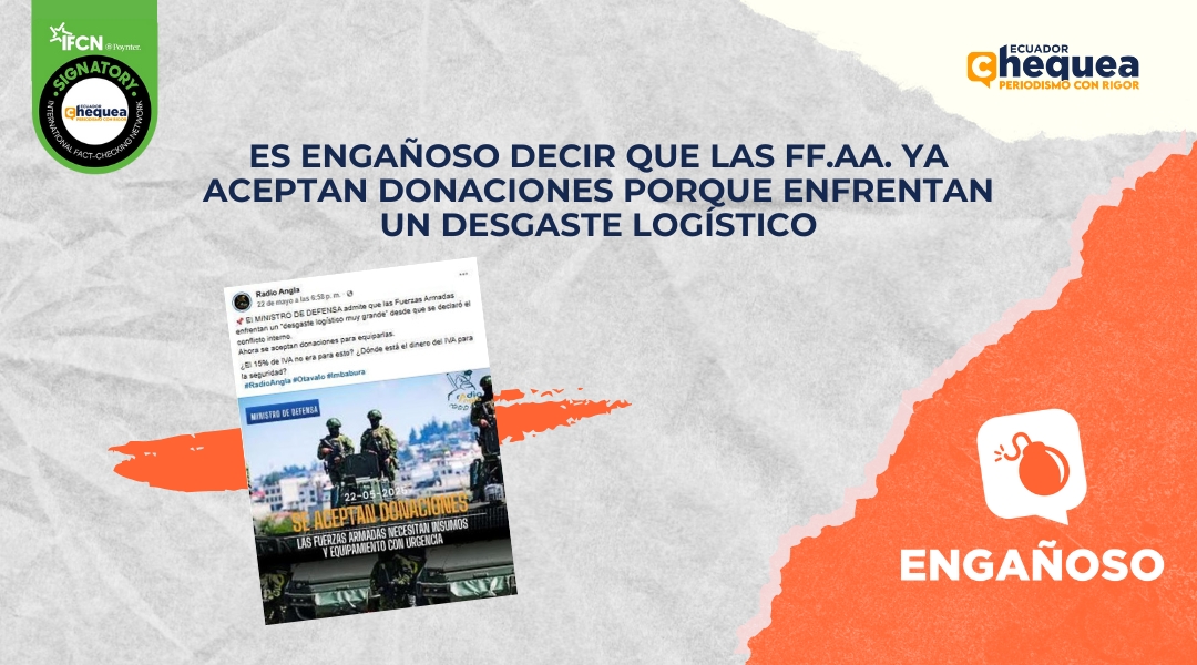 El contenido desinformativo asegura que las Fuerzas Armadas ya están aceptando donaciones, frente a esta afirmación, Ecuador Chequea, se comunicó con la entidad y aseguraron que “Las Fuerzas Armadas no están aceptando donaciones”, como quiere hacer creer el post a verificar.