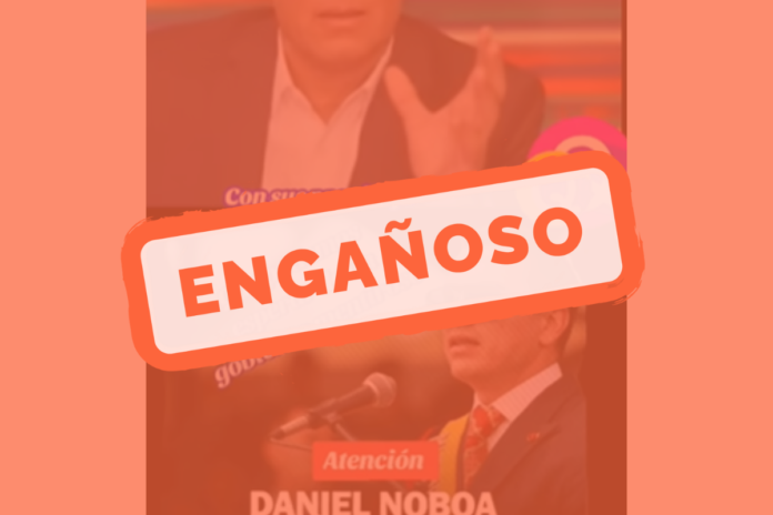 El contenido es engañoso porque mezcla un hecho verificable, la reducción efectiva de la pensión alimenticia que Daniel Noboa paga por su primera hija, con un video antiguo y fuera de contexto del periodista Fernando del Rincón.