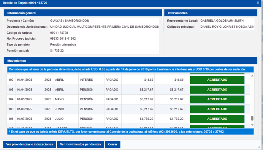 - Los valores de la pensión constan en el SUPA, sistema oficial de la Función Judicial.