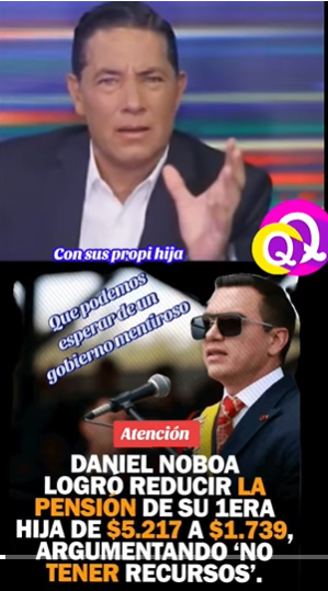 Lo que afirma: Que Noboa bajó la pensión de su hija y que Del Rincón reaccionó públicamente criticándolo por ese hecho.