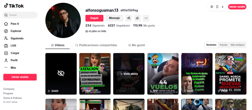 El video, fue publicado por el usuario @alfonsoguaman.13, en TikTok y fue replicada en páginas dedicadas a contenido político y clips descontextualizados.