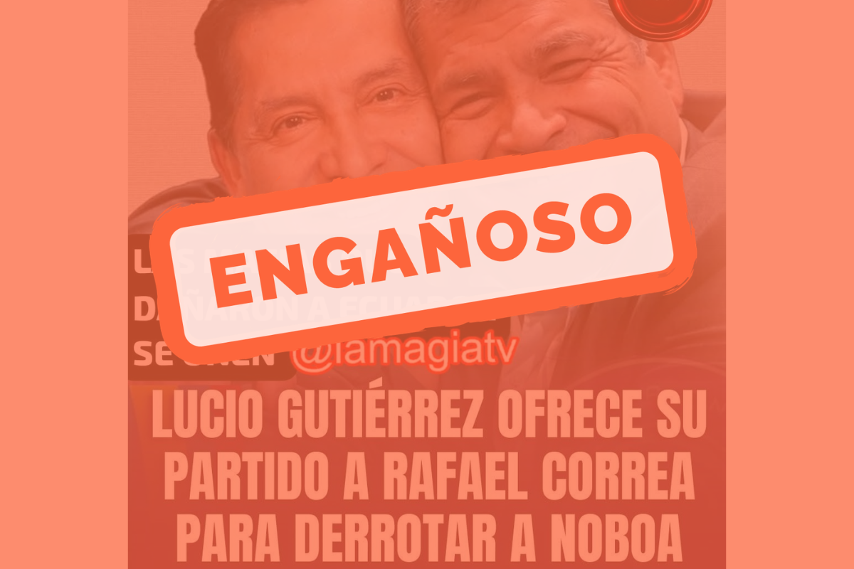 Una publicación en Facebook asegura que el expresidente Lucio Gutiérrez puso a disposición de Rafael Correa y de la Revolución Ciudadana su partido político, Sociedad Patriótica (PSP), para enfrentar a Daniel Noboa en las elecciones seccionales. Sin embargo, esa interpretación no se sostiene con lo que realmente dijo.