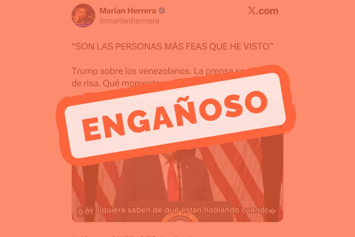 El contenido es engañoso porque atribuye a Donald Trump una afirmación general contra los venezolanos que no se corresponde con lo dicho en la fuente original. Aunque el presidente utilizó expresiones despectivas, estas estuvieron dirigidas a un grupo específico de manifestantes que protestaban en defensa de Nicolás Maduro, no a la población venezolana en su conjunto.