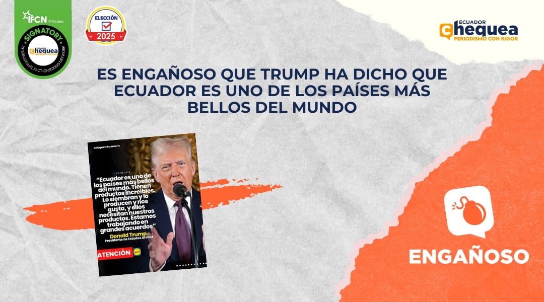 Se califica este contenido como engañoso. La declaración de Trump fue dicha en 2020. Esto, cuando Ecuador estaba bajo el Gobierno de Lenin Moreno y Estados Unidos firmaron acuerdos en educación, inversión, seguridad, economía y lucha anticorrupción. Sin embargo, actualmente, Trump no se ha referido al país.