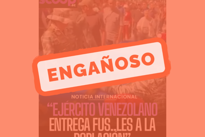 - Lo que afirma: Que en enero de 2026 el ejército de Venezuela está repartiendo fusiles entre la población civil.