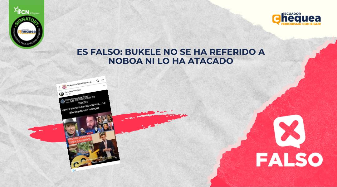 Por ejemplo, una publicación en Facebook asegura que Nayib Bukele se ha referido al presidente, Daniel Noboa, y lo ha atacado. Se califica este contenido como falso. En el video original, Bukele no se refirió a Noboa. En octubre de 2024, en su visita oficial a Argentina, el Presidente salvadoreño habló sobre la situación de El Salvador en cuestión a seguridad. En ninguna parte del video se refirió a Ecuador. Además, el video está generado con inteligencia artificial.