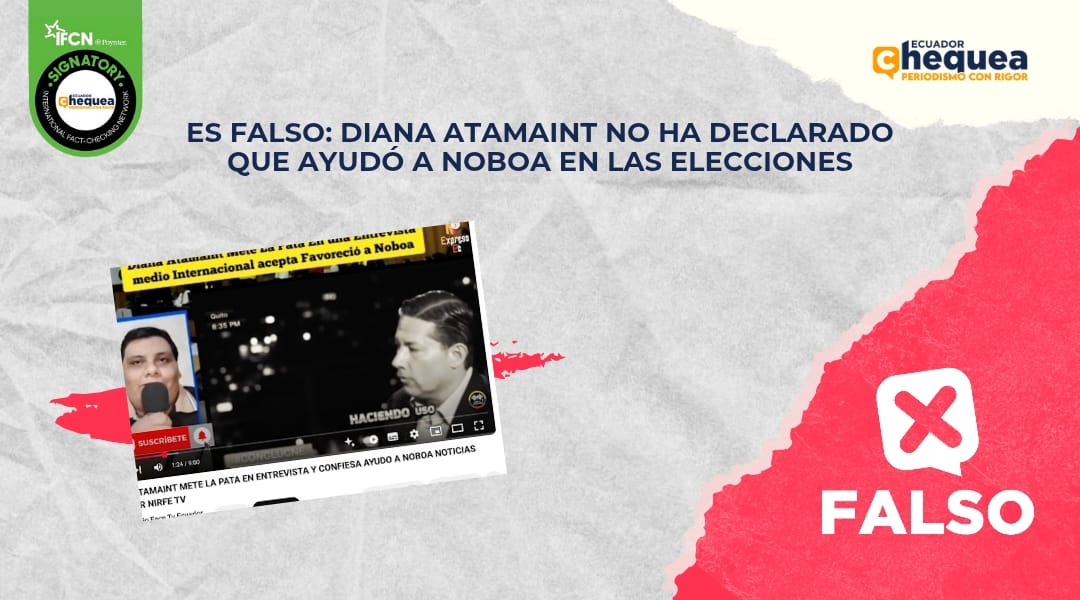 En ningún momento de la entrevista, Diana Atamaint mencionó haber brindado ayuda a Daniel Noboa, como sugiere el contenido desinformativo que circula en redes sociales.