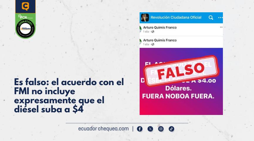 Esas declaraciones han causado que varios contenidos desinformativos circulen. Por ejemplo, en Facebook, un post asegura que el acuerdo con el FMI es que el precio del diésel suba a $4. Se califica este contenido como falso.