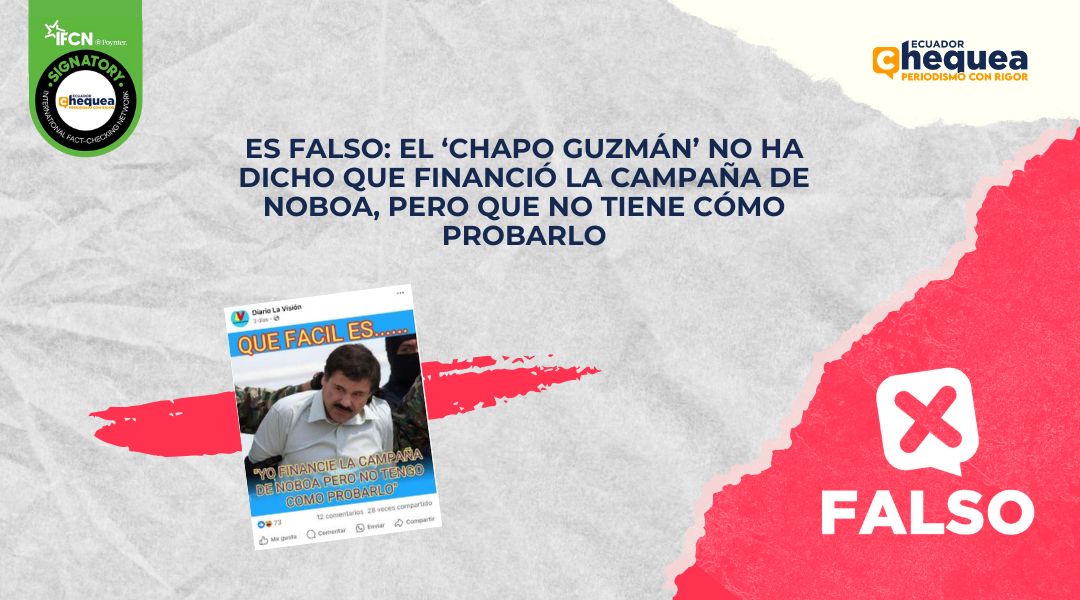 No hay evidencia de que Joaquín Guzmán haya afirmado haber financiado la campaña electoral en Ecuador de Noboa, ni de que haya declarado que no puede probarlo, como quiere hacer el post de Facebook.
