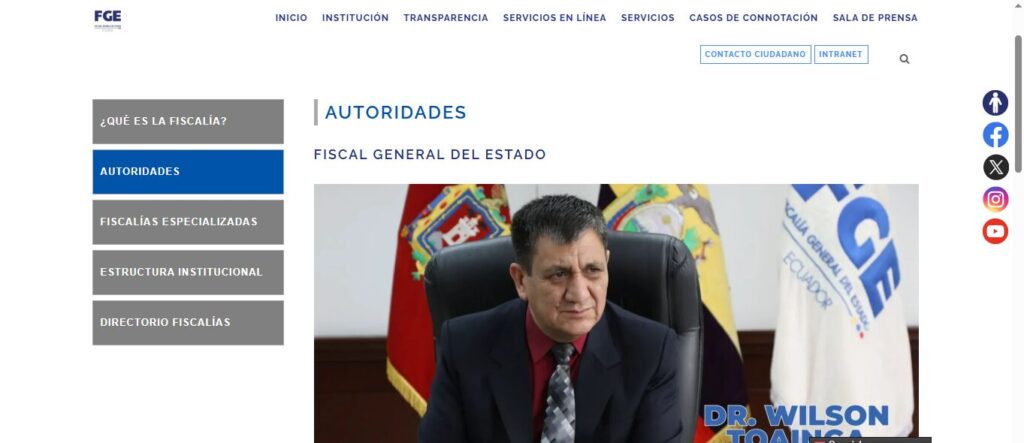 Por otro lado, al revisar, la misma página web en la sección “autoridades”, Toainga todavía figura como fiscal general subrogante, desde el 20 de mayo, tras la renuncia de Diana Salazar.