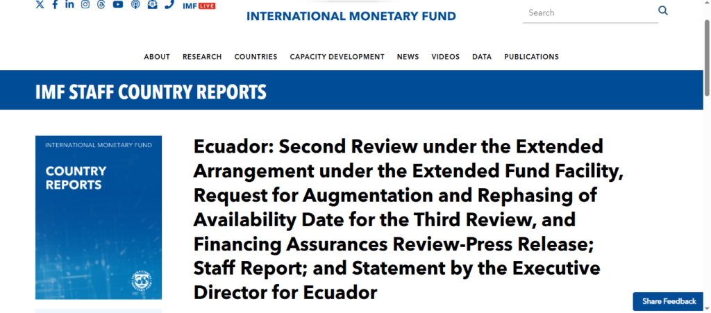 Al analizar el más reciente informe del FMI titulado: “Segunda revisión en el marco del Acuerdo Ampliado del Fondo Ampliado, solicitud de aumento y reprogramación de la fecha de disponibilidad para la tercera revisión, y revisión de las garantías de financiamiento – Comunicado de prensa; Informe del personal; y Declaración del Director Ejecutivo para Ecuador”, se encontró que fue publicado el 21 de julio. Es decir, cuatro días antes de que el Gobierno anunciara el despido de 5.000 funcionarios.