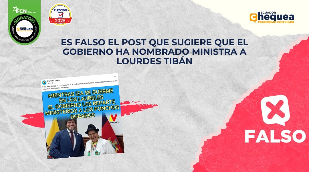 Lourdes Tibán, actualmente, es prefecta de Cotopaxi, El contenido desinformativo se da después de que el Gobierno de Noboa hiciera algunos cambios en su gabinete. En ninguno de estos se incluyó a Tibán.