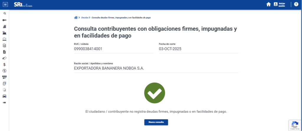 El SRI no tiene deudas con el grupo Noboa