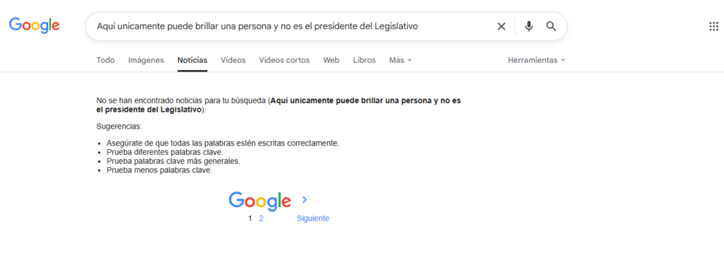 A su vez, para comprobar que no ha existido un reporte de otro medio de comunicación al respecto, se colocó la misma frase del post de Facebook, pero no se encontró ningún tipo de publicación o supuesta declaración de Noboa.