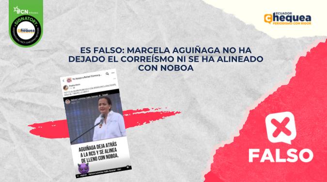 Bajo este contexto, una publicación en Facebook asegura que la prefecta del Guayas, Marcela Aguiñaga, deja la Revolución Ciudadana y se alinea con el presidente, Daniel Noboa. Actualmente, no hay evidencia de una desafiliación de Aguiñaga al correísmo y un acercamiento a Noboa. El video no es actual y sucedió en noviembre de 2024. Aunque, la Prefecta del Guayas sí ha evidenciado un distanciamiento con el correísmo y anunció que evaluará su continuidad, pero no se ha conocido una decisión.