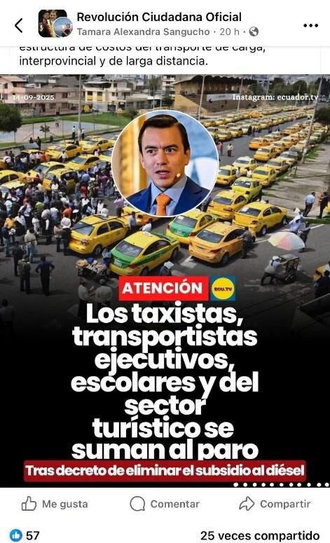 Ecuador atraviesa una tensión política tras la decisión del Gobierno de Daniel Noboa de eliminar el subsidio al diésel el pasado viernes. La medida ha generado diversas reacciones entre diversos sectores. Sin embargo, los desinformantes no se han quedado atrás y continúan difundiendo publicaciones desactualizadas o falsas.
