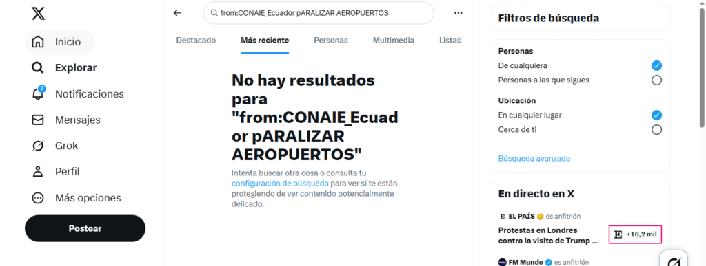 Ninguna organización ha hecho esa amenaza. Tampoco se registraron desmanes en Latacunga. El aeropuerto de Quito funciona con normalidad y tampoco ha sido cerrado desde el lunes, cuando empezaron las paralizaciones en distintas provincias del país, tras el retiro del subsidio al diésel.