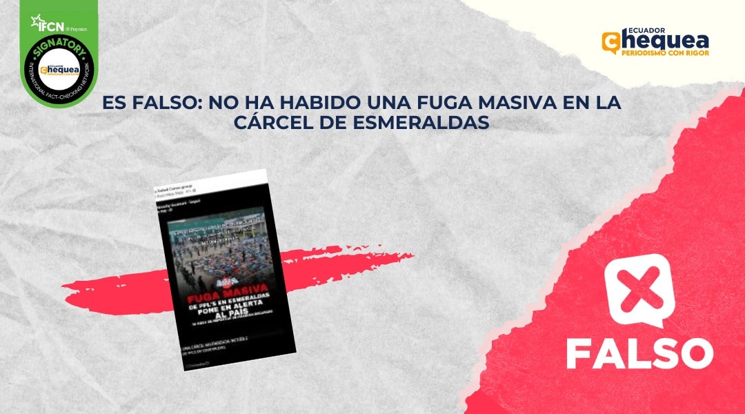 Una publicación en Facebook asegura que el país se vuelve incontrolable con un Gobierno ilegítimo porque hay una fuga masiva de presos en Esmeraldas que pone en alerta al país. “48 reos reportan se habrían escapado”, señala el post. Se califica este contenido como falso. El SNAI desmintió la publicación. El hecho se dio en enero de 2024, cuando la misma entidad confirmó que el 14 de enero de ese año, al realizar un operativo de requisa se evidenció que 48 presos se habían fugado, en ese entonces se informó que 5 personas habían sido recapturadas.