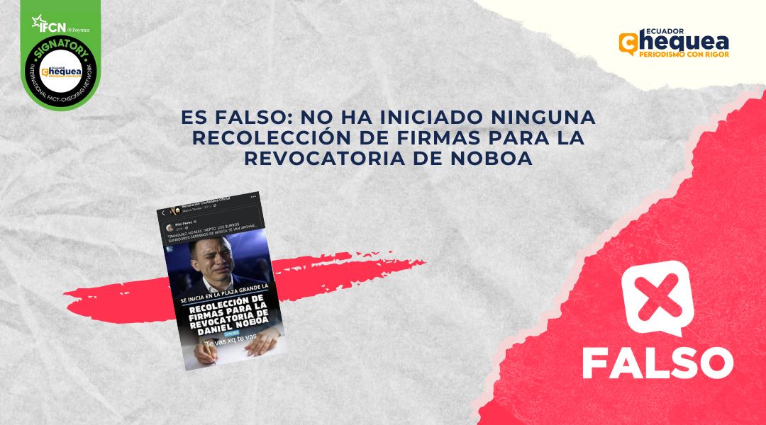 Sin embargo, esta información es calificada por Ecuador Chequea como falsa. No existe ningún proceso de revocatoria abierta, y legalmente todavía no se puede proceder con un trámite de ese tipo. Además, El Comercio no ha publicado esta información.