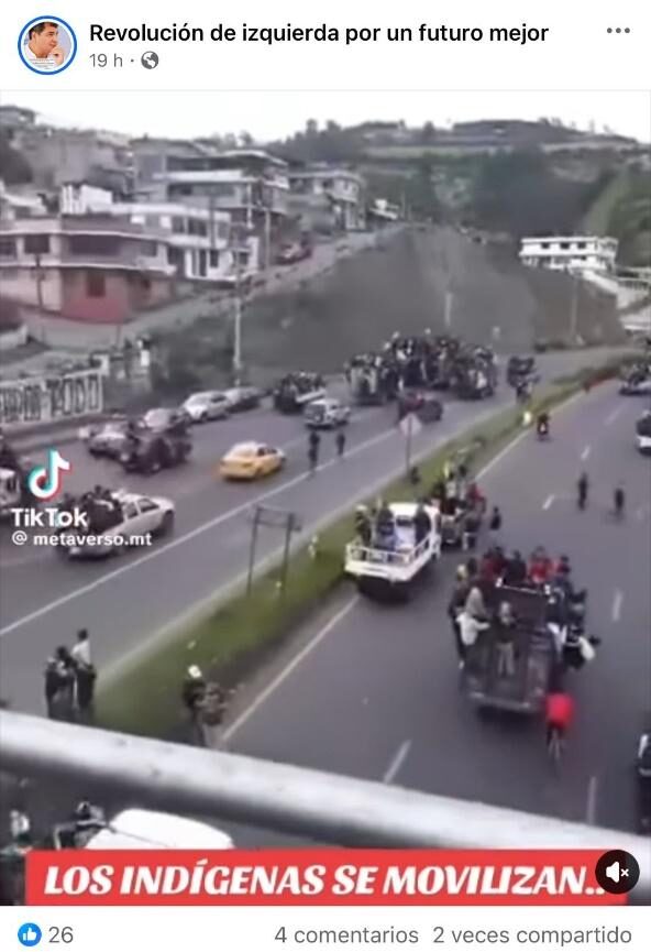 El video que usa el post es del paro de 2022 y fue tomado de El Universo. Entonces, una caravana llegó al sur de Quito para unirse a la movilización.