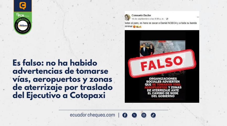 Una publicación en Facebook asegura que los indígenas se movilizan masivamente a Latacunga, porque ahí está el presidente, Daniel Noboa. Se califica este contenido como falso.