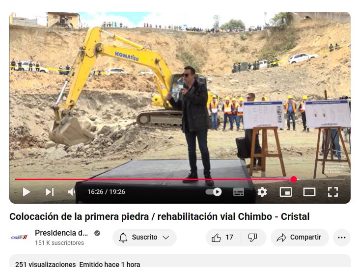 Además, el presidente se encuentra cumpliendo agenda en el país. Hoy participó en la colocación de la primera piedra en la vía Chimbo-Cristal.