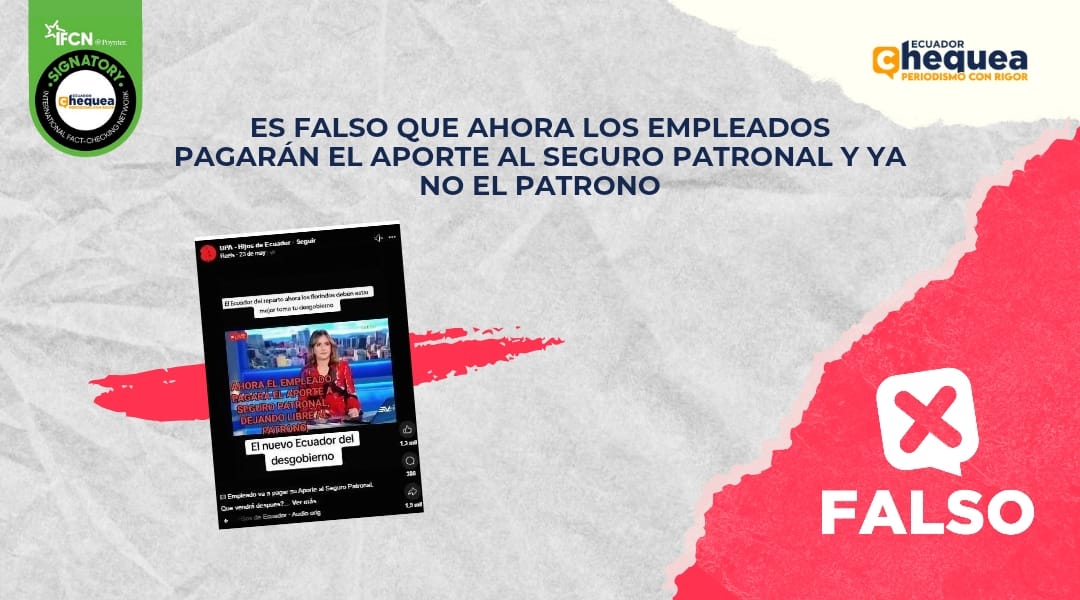 Bajo este contexto, una publicación en Facebook asegura que el empleado pagará el aporte al seguro patronal y ya no el patrono. Se califica este contenido como falso. Actualmente, la jubilación patronal es cancelada por el empleador. Aún no se ha implementado ninguna reforma. Sin embargo, el Gobierno propuso una reforma al sistema de jubilación patronal que implicaría que tanto empleadores como trabajadores realicen aportes desde el primer mes de trabajo. Esta medida aún está en proceso de análisis y discusión.