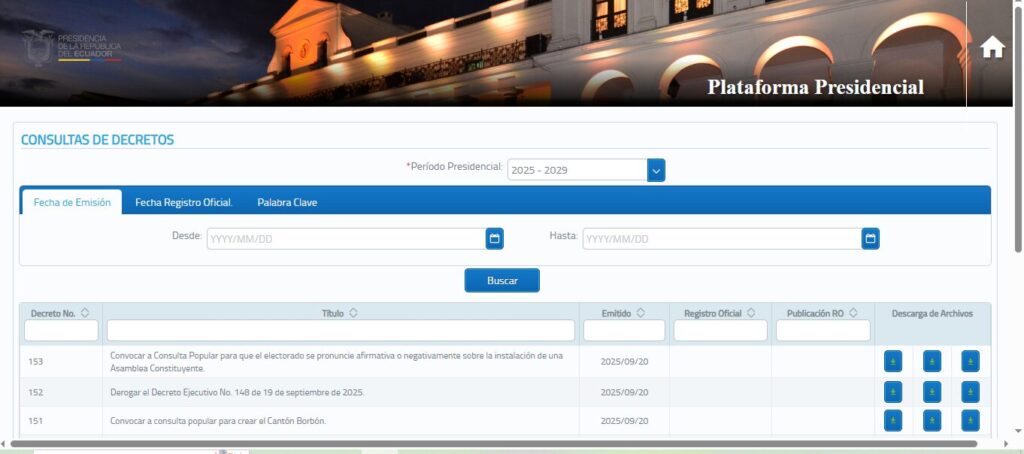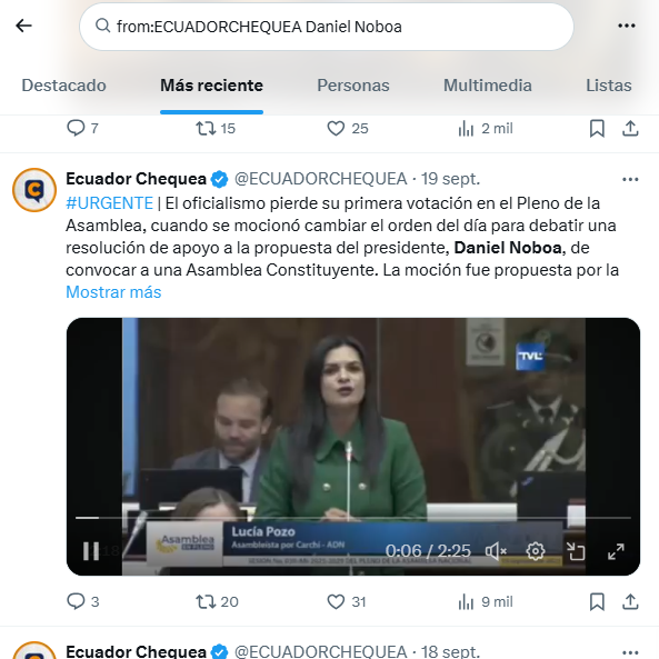 Frente a los rumores, Ecuador Chequea revisó la página oficial de la Presidencia, específicamente la sección ‘Decretos’, y no encontró ningún documento que haga referencia a un eventual viaje presidencial ni a una salida por motivos personales. Hay que recordar que, en ocasiones anteriores, cuando el primer mandatario ha salido del país, la información ha sido publicada a través de esta plataforma.