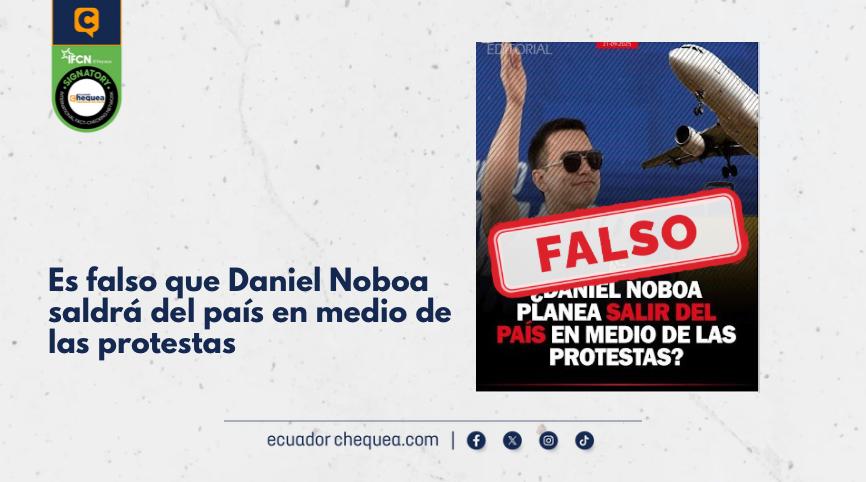 Una publicación en Facebook sugiere —aunque lo coloque entre signos de interrogación— que el presidente, Daniel Noboa, podría salir del país en medio de las protestas. Se califica este contenido como falso.