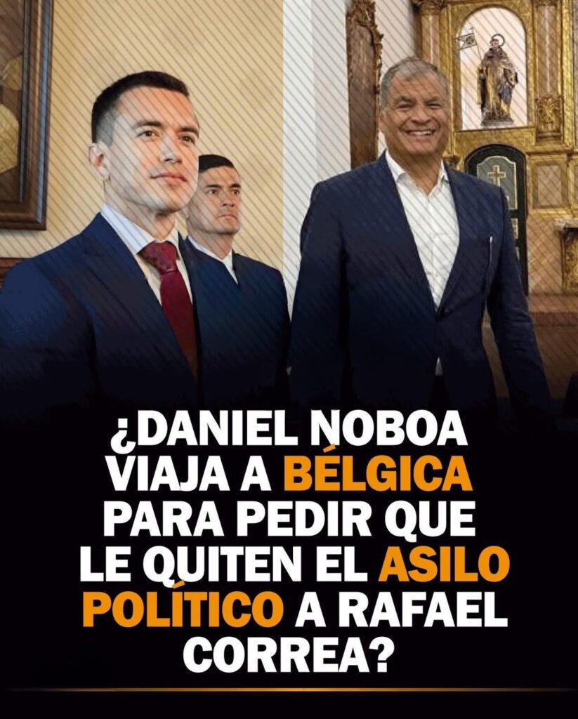 En redes circula una publicación que afirma que Daniel Noboa aprovechará su visita a Bélgica para pedir que se retire el asilo político de Rafael Correa. No existe evidencia que lo respalde. Además, el asilo no puede ser revocado por solicitud de otro jefe de Estado, sino únicamente mediante procesos legales internos del país que lo concede. El contenido viral atribuye intenciones diplomáticas sin base verificable.