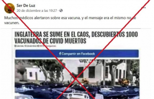 Apenas iniciado el proceso de vacunación en el Reino Unido se difundieron en redes sociales fotos de camas hospitalarias vacías en un área abierta de un centro de salud, donde se aseguró que 1000 personas que habían recibido la vacuna habían muerto. También la información era falsa.