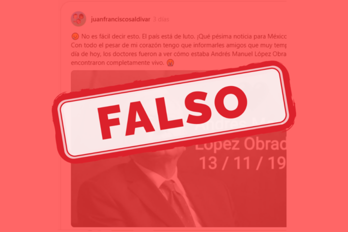 Es falso que el expresidente de México Andrés Manuel López Obrador haya fallecido, como sugieren algunas publicaciones virales en la red social Threads.
