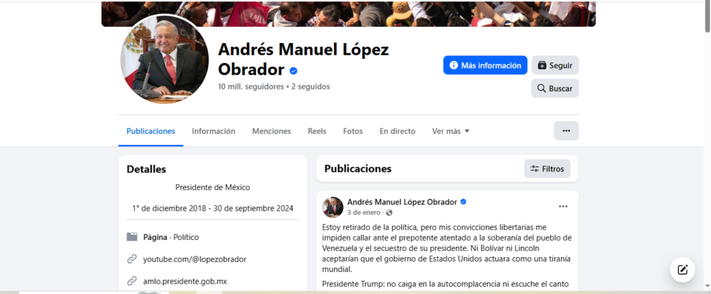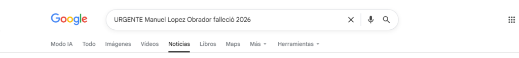 Una revisión de las cuentas oficiales de López Obrador, de los portales del Gobierno mexicano y de medios informativos muestra que no hay ningún anuncio relacionado con su fallecimiento. Todo indica que se trata de un caso de desinformación difundido con un formato engañoso, diseñado para generar interacción y viralidad en redes sociales.