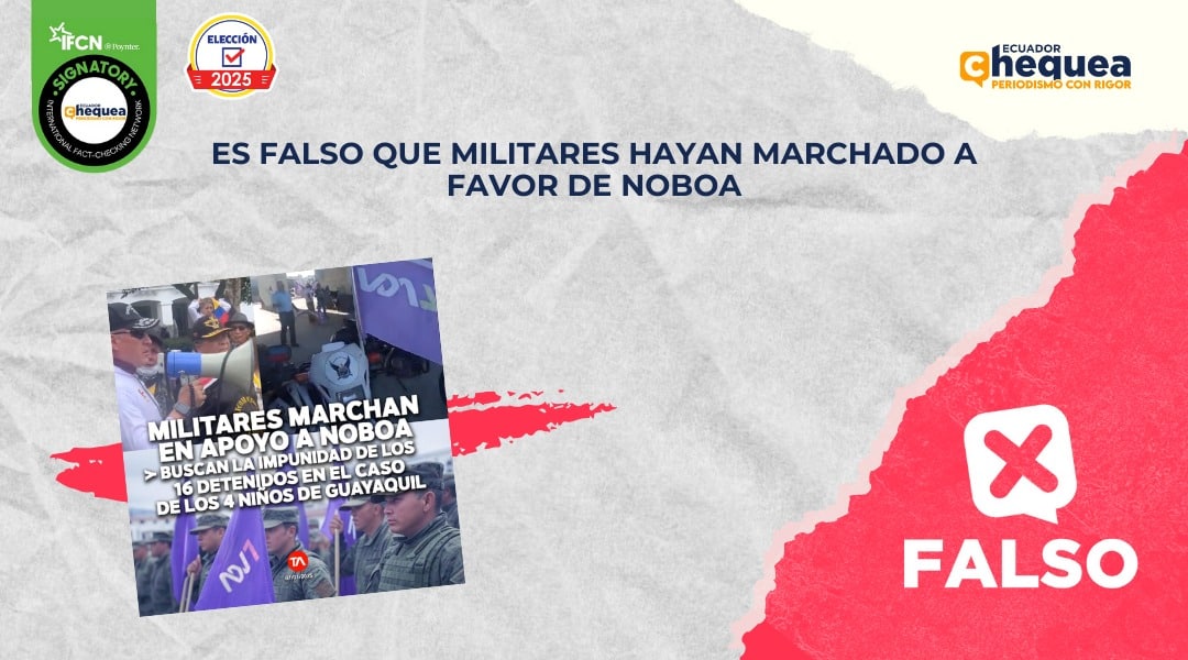 Ecuador Chequea se comunicó con las Fuerzas Armadas y aseguraron: “Las Fuerzas Armadas no somos actores políticos, nosotros defendemos la soberanía del país y esa es nuestra obligación. Deberá usted por favor preguntar a quién elaboró este post, pues ese producto comunicacional no ha sido elaborado por Fuerzas Armadas”.