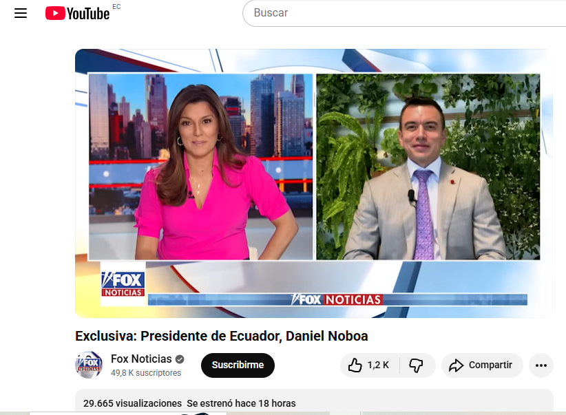 La presentadora de Fox News, Rachel Campos-Duffy, afirmó ayer durante una entrevista con el presidente ecuatoriano Daniel Noboa que este había decretado dos estados de emergencia por crimen organizado en 2023. Sin embargo, Noboa asumió el poder a finales de ese año y no emitió ningún decreto de ese tipo hasta enero de 2024.