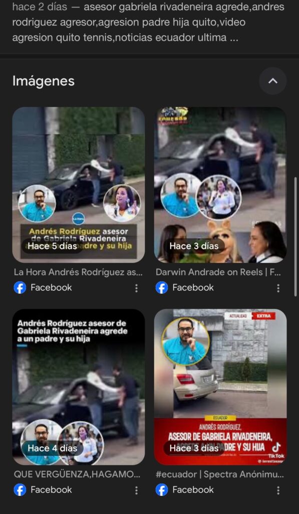 • Lo que afirma: Que el agresor del video se llama “Andrés Rodríguez” y que fue asesor de Gabriela Rivadeneira.