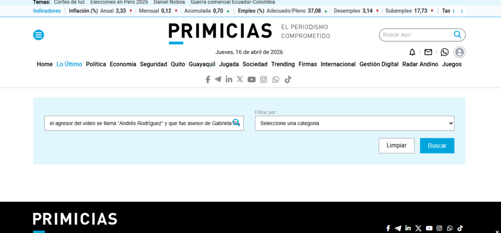 Y no existe evidencia pública, oficial ni documental que permita confirmar que el agresor tenga ese nombre o que haya trabajado como asesor de la actual presidenta de Revolución Ciudadana.
