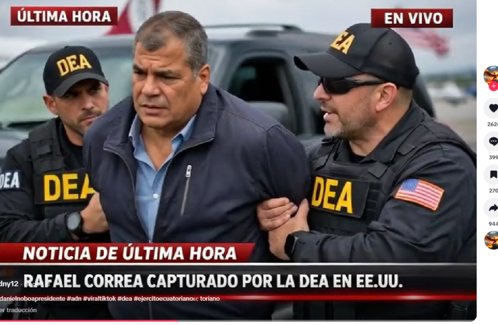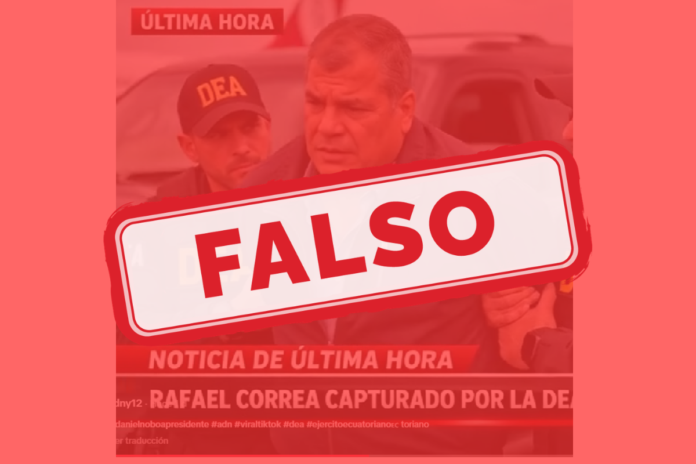 El contenido es falso. No hay evidencia pública confiable de que Rafael Correa haya sido capturado por la DEA en Estados Unidos.