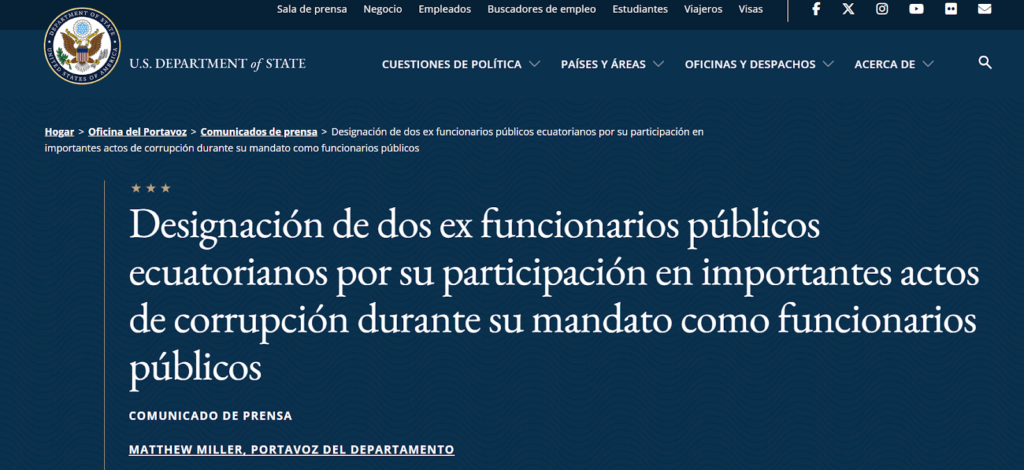 - Departamento de Estado de EE.UU: https://2021-2025.state.gov/designation-of-two-former-ecuadorian-public-officials-for-involvement-in-significant-corruption-during-their-tenures-as-public-officials/?safe=1
