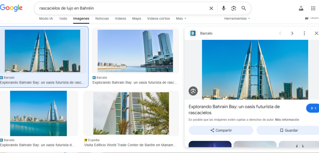- Monitoreo en Google Imágenes sobre rascacielos en Bahréin.