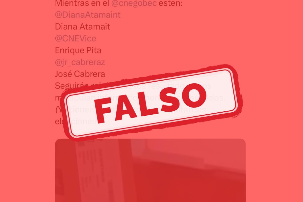 El post proviene de una cuenta de X, sin referencias a fuentes oficiales ni documentos del CNE. No enlaza a datos verificables ni a boletines institucionales, lo que confirma que se trata de una afirmación sin sustento.